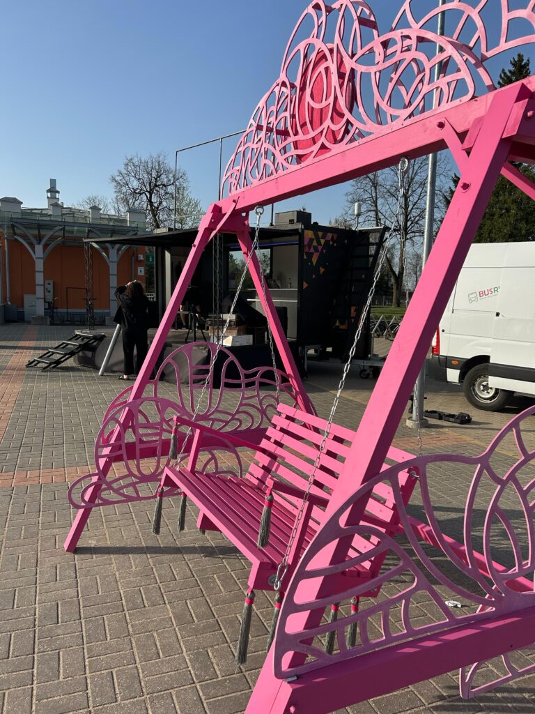 Rūdolfa Blaumaņa iela 2a. Šūpuļdīvāns baudītājiem pieejams no plkst.8.00 līdz 18.00. Šūpojies no 19. līdz 21. aprīlim!