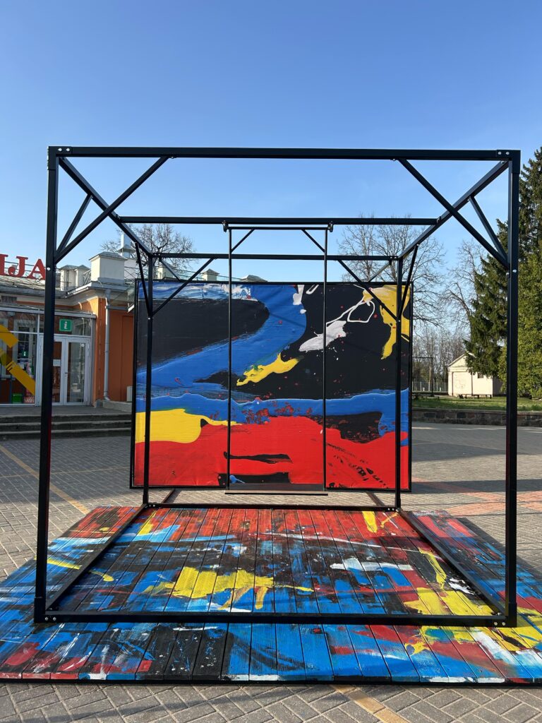 Vides objekts “LAIK, APSTĀJIES” ir pārtapis par “PĀRSTĀJIET GRIESTIES”. Sen aizmirstas lietas mēs dažreiz izņemam no krātuves, lai pateiktu, ka vērtības nepazūd arī pēc laika. Pirmā šūpoļu festivāla instalācija, puisēns šūpolēs ir sagriezies otrādi no lielās šūpošanās un dzīves steigas ritma. Patīkamā šūpošanās kļūst bīstama. Tas ir balanss, kas stāsta par to, ka mēra sajūtai ir jābūt visā, kam cilvēks pieskaras.