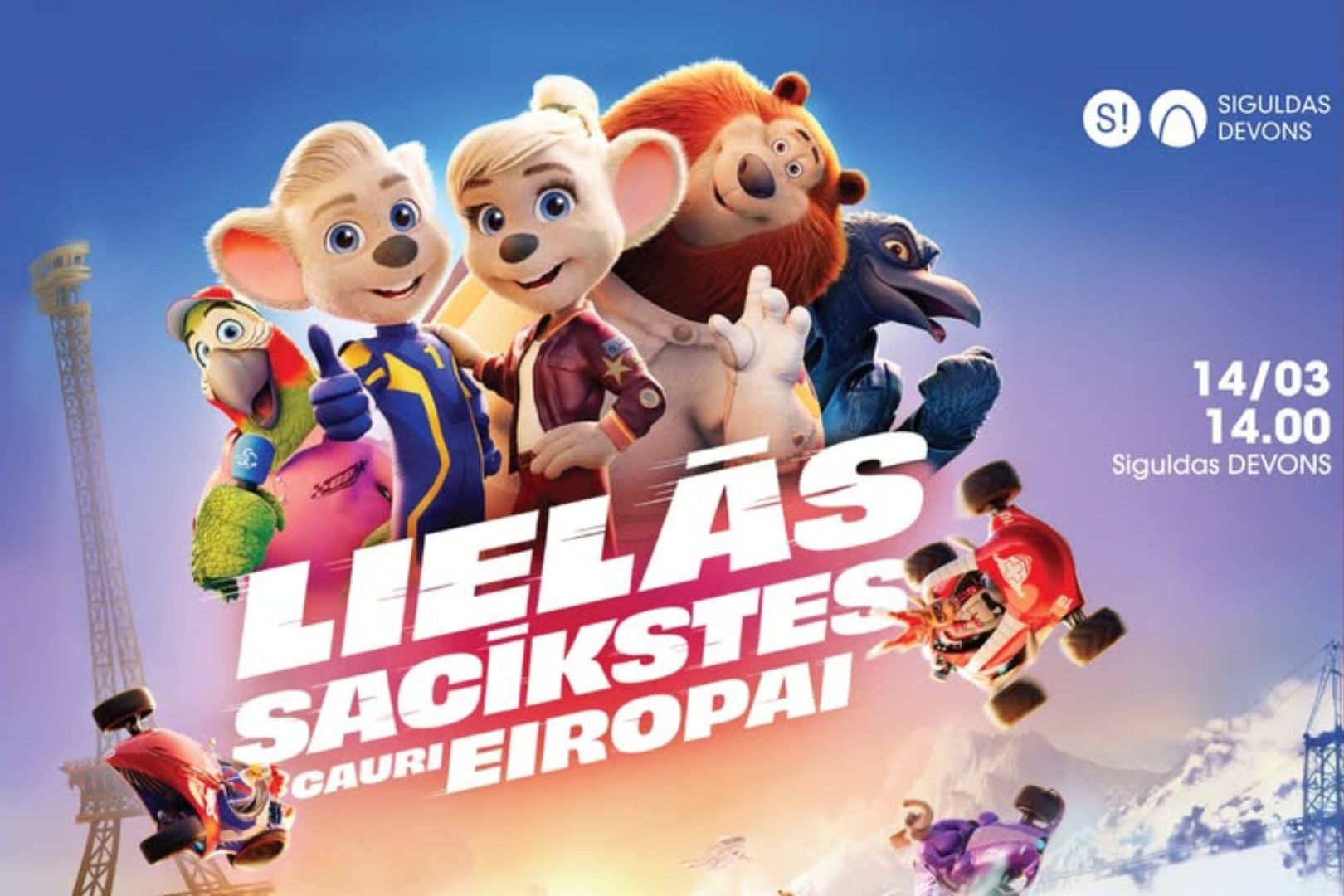 Kultūras centrā “Siguldas devons” būs skatāma animācijas filma visai ģimenei “Lielās sacīkstes cauri Eiropai”.