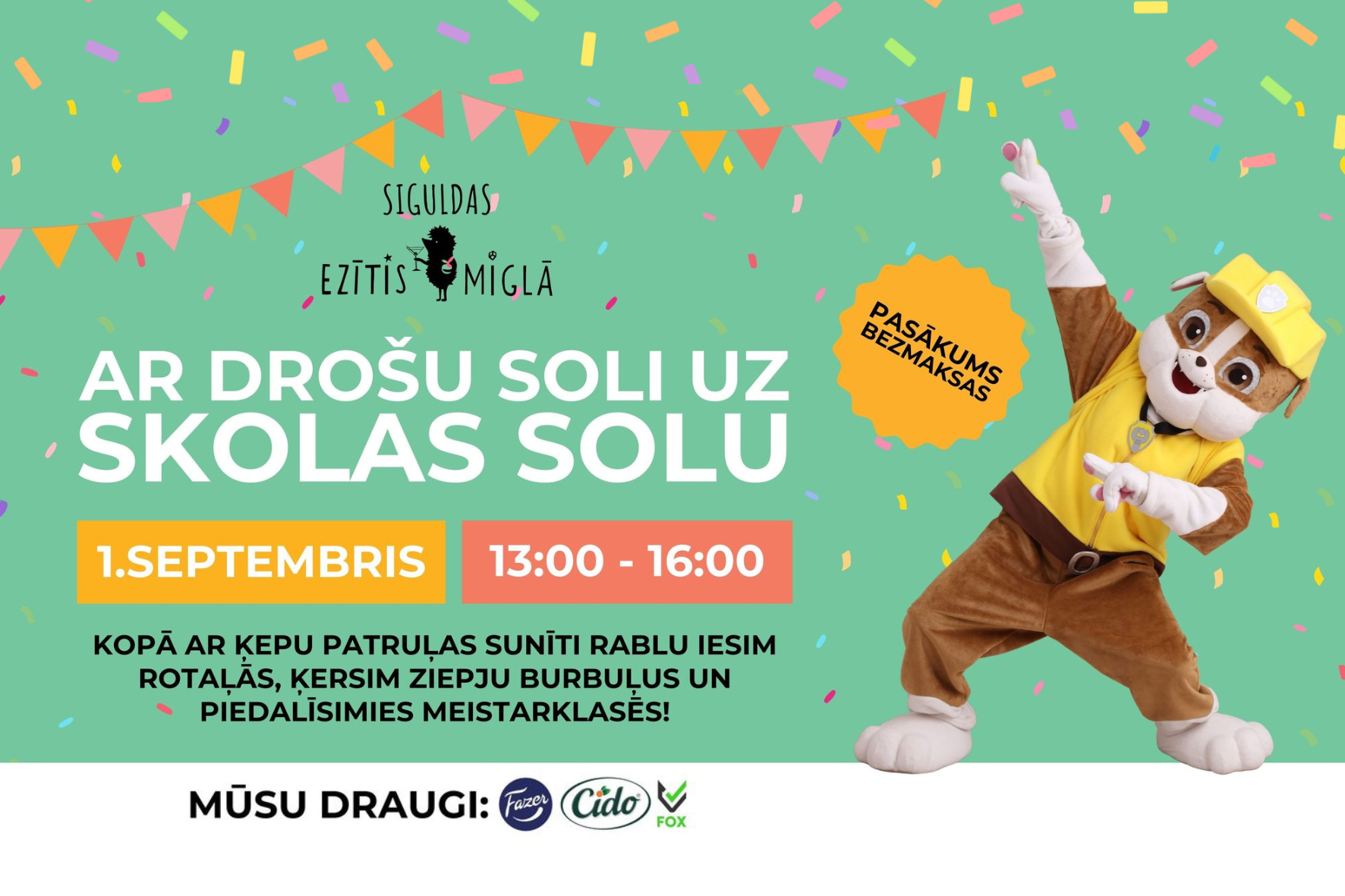 Kopā ar Ķepu patruļas sunīti Rablu iesim rotaļās, ķersim ziepju burbuļus un piedalīsimies meistarklasēs!