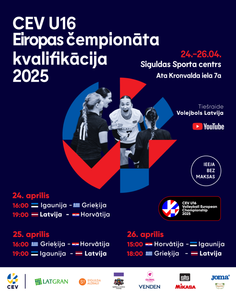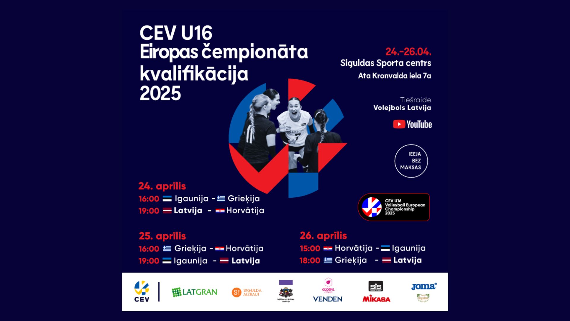 Latvijas U-16 meiteņu izlase aizvadīs CEV Eiropas čempionāta kvalifikācijas turnīra otro kārtu, kas no 24. – 26. aprīlim norisināsies Siguldā!