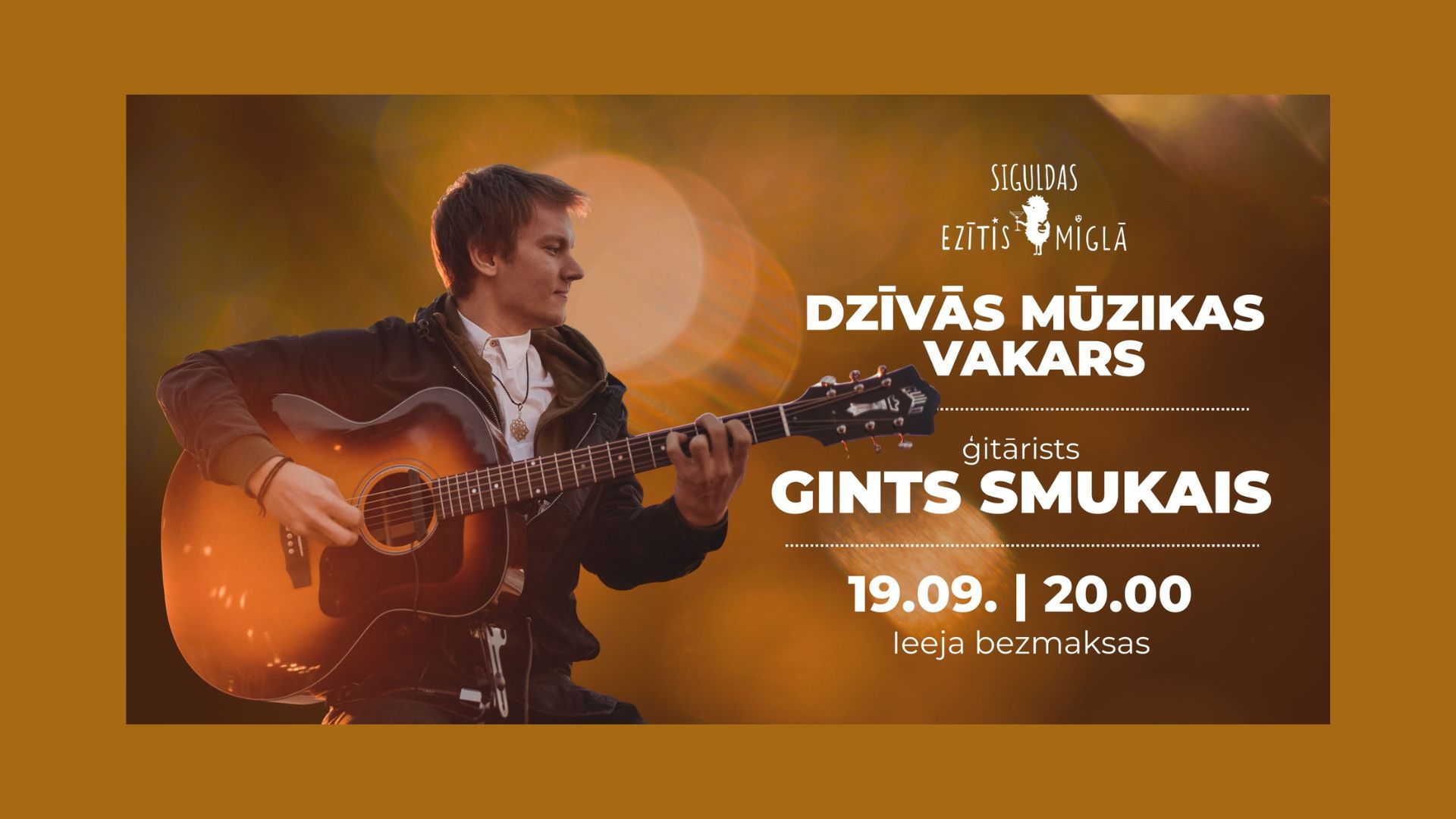 Dzīvās mūzikas vakars ar ģitāristu GINTU SMUKO. Piektdien, 19. septembrī plkst. 20.00 Siguldas Ezītī miglā.