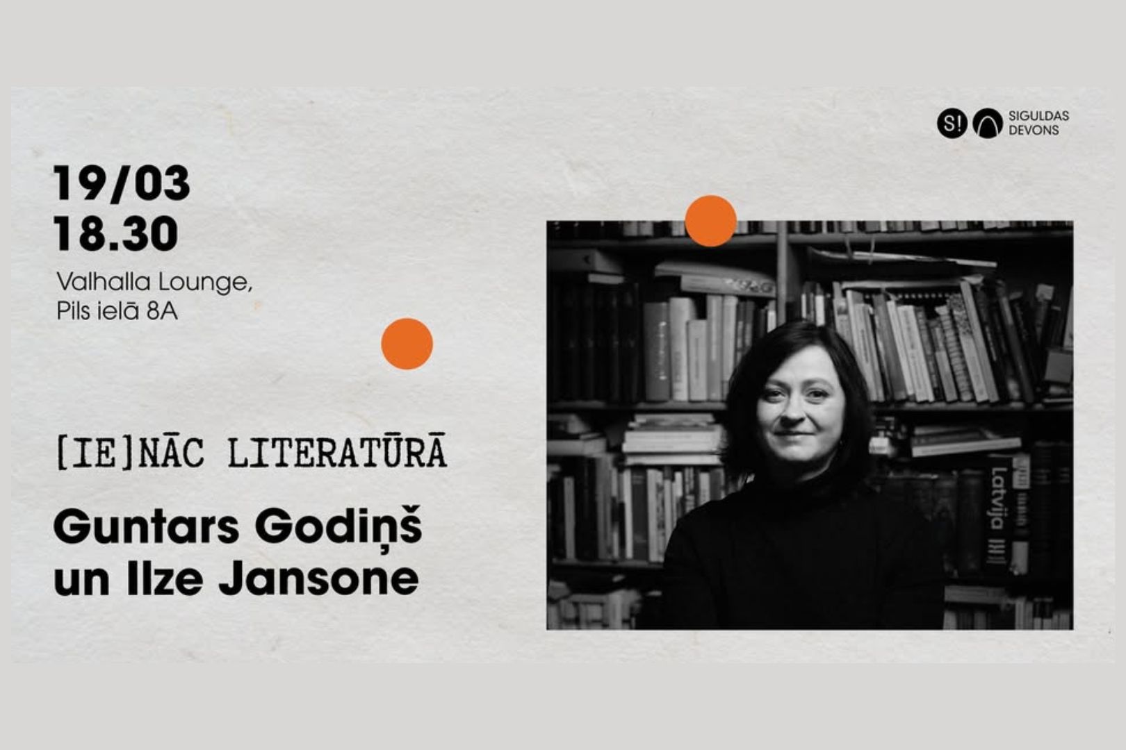 Siguldas “Valhalla Lounge” notiks cikla “[Ie]nāc literatūrā” marta saruna. Uz to Guntars Godiņš ir aicinājis rakstnieci Ilzi Jansoni.