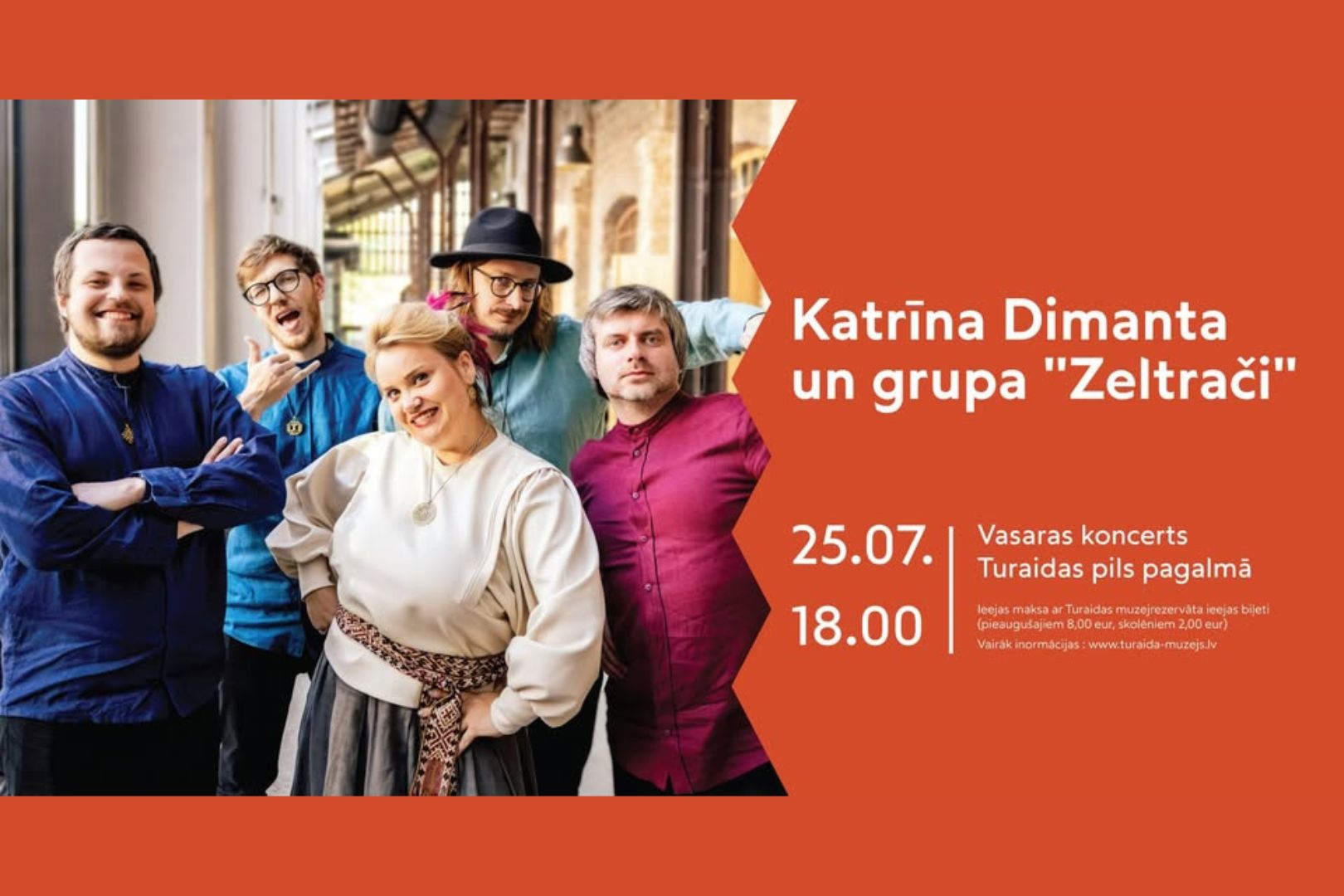 Aicinām uz Katrīnas Dimantas un grupas “Zeltrači” koncertu Turaidas pils pagalmā. Ar siltu smaidu un neizsīkstošu enerģiju jūs priecēs Katrīna Dimanta – dziedātāja, komponiste, instrumentāliste un īsta muzikāla enerģijas bumba! Viņa ir cilvēks orķestris, kuras balss spēj gan aizkustināt, gan iepriecināt. Katrīnas dzirkstošais humors un muzikālā daudzpusība padara viņas uzstāšanos par neaizmirstamu piedzīvojumu.
