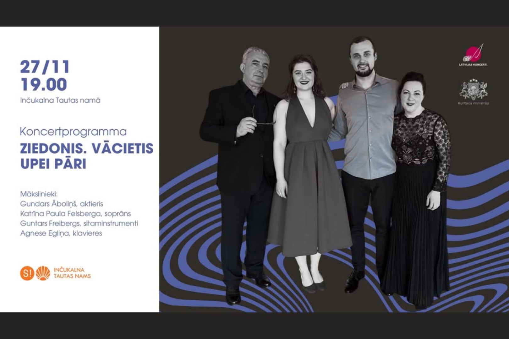 Pāri likteņupei Daugavai. Pāri laika upei, kur tiekas jaunība un pieredze. Pāri mūzikas un dzejas upei – skaista satikšanās koncertprogrammā “Upei pāri. Ziedonis un Vācietis”, kas norisināsies Inčukalna Tautas namā.