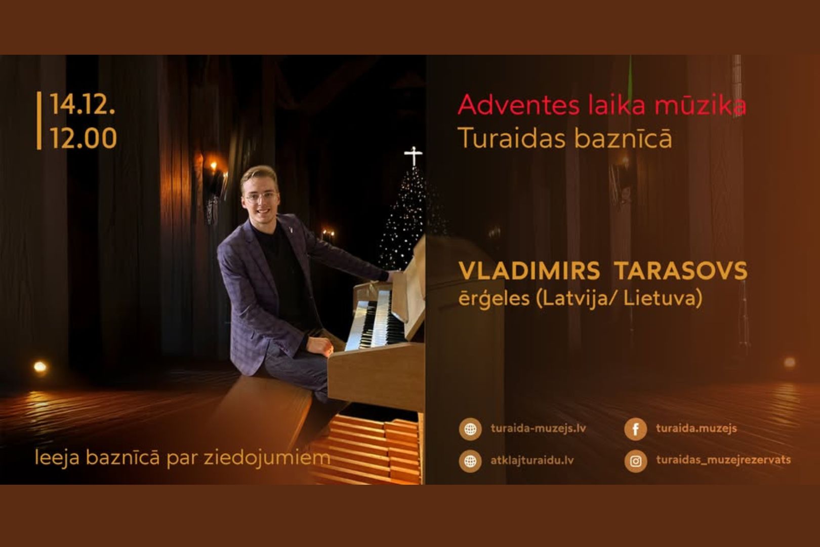 Koncertā uzstāsies izcilais ērģelnieks un ērģeļmeistars Vladimirs Tarasovs — Rīgas Svētā Pētera baznīcas galvenais ērģelnieks, kurš aktīvi koncertē gan Latvijā, gan ārvalstīs, radot spilgtas un emocionālas ērģeļmūzikas programmas.