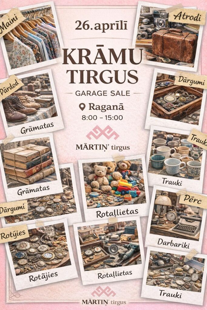 LIELAIS KRĀMU tirgus Raganā MārtiņTirgus 26.aprīlī! Vintage, garage sale, krāminieks, sauc kā gribi, būs vien varen fein andel! Viss kas Tev mājās lieks, ved andelēt, jo citam var noderēt, būs forši.