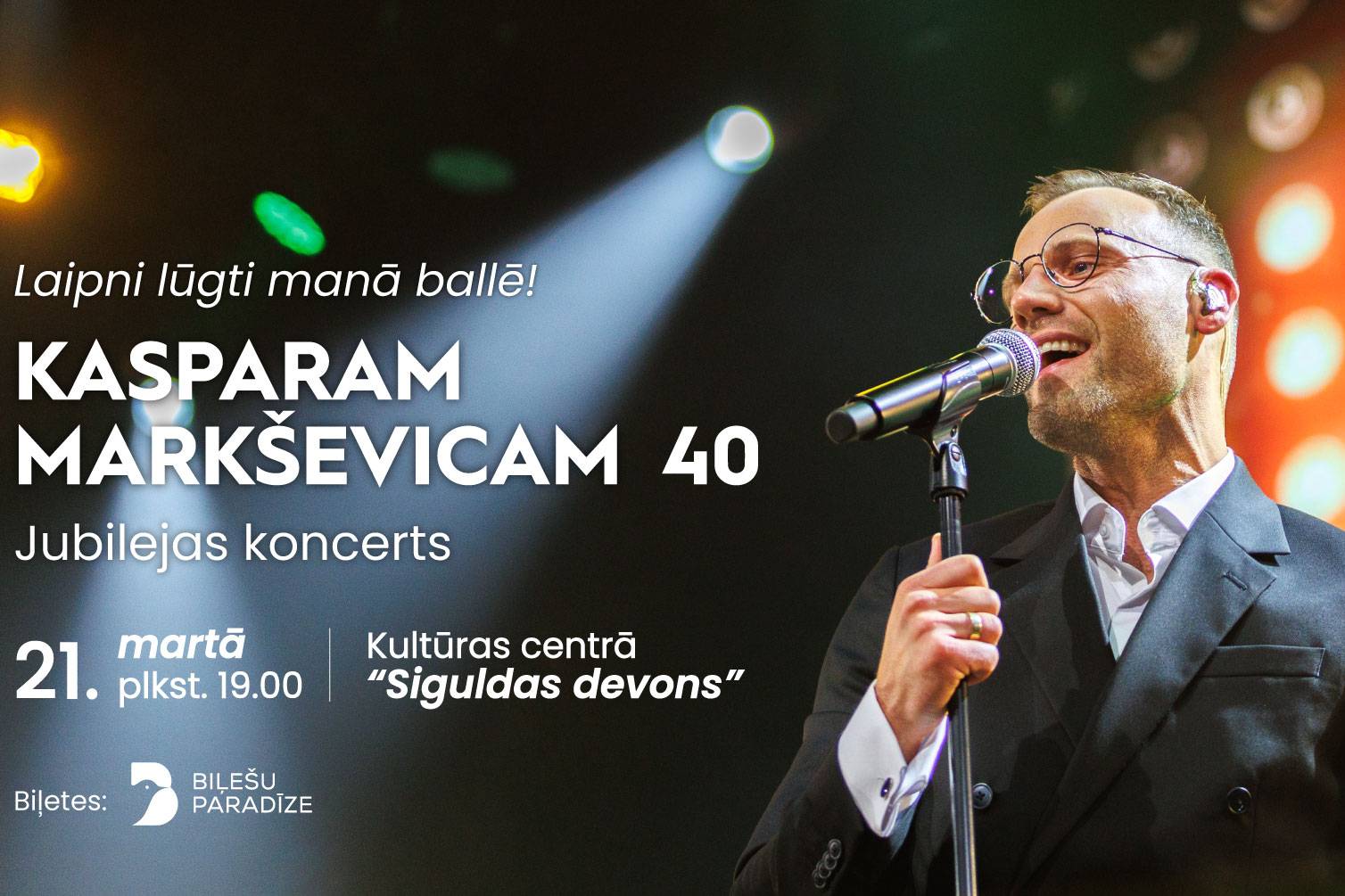 Pēc veiksmīgi aizvadītā koncerta Kultūras centrā “Ulbrokas pērle” pērnā gada nogalē populārais dziedātājs Kaspars Markševics klausītājus pavasarī aicina uz savai četrdesmit gadu jubilejai veltīto koncerttūri “Laipni lūgti manā ballē”, kuras pirmais koncerts notiks jau 13.martā Bauskas Kultūras centrā. Ar koncertiem dziedātājs viesosies arī Siguldā, Ventspilī, Kuldīgā, Cēsīs un citās Latvijas pilsētās.