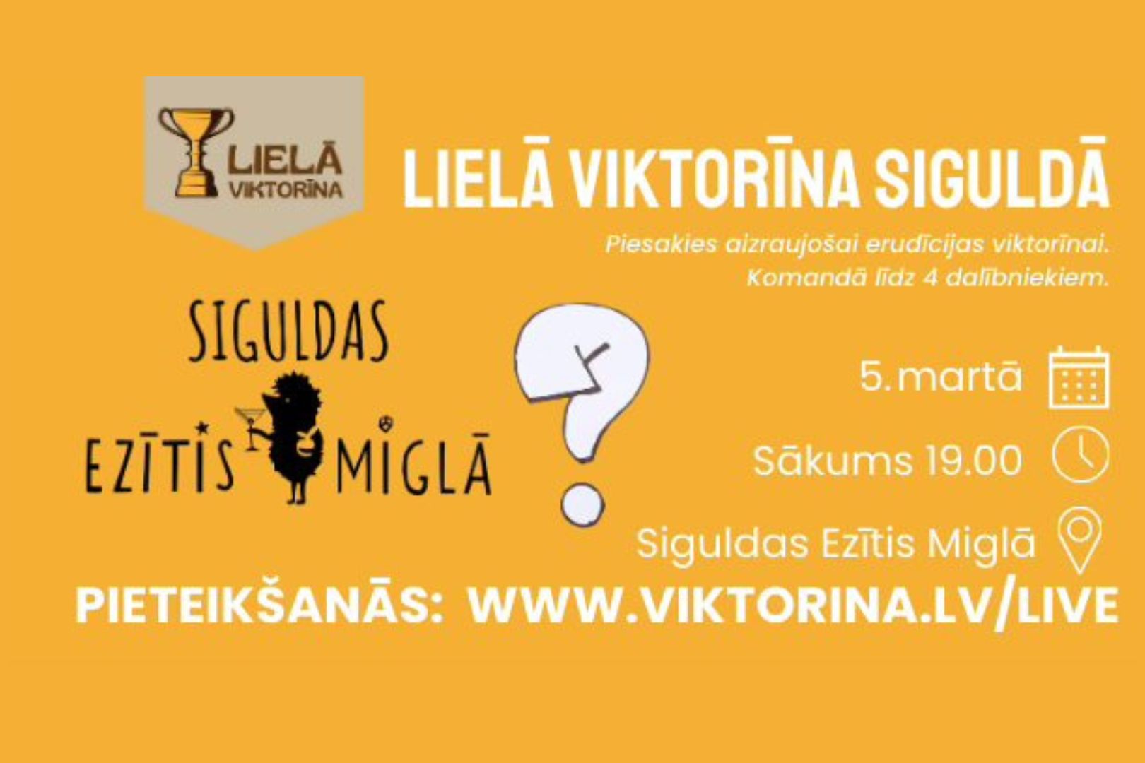 Siguldas Ezītis miglā notiks aizraujoša komandu viktorīna. Tajā paredzēti 10 raundi ar 6 jautājumiem katrā, un atbildes būs jāiesniedz uz atbilžu lapiņām.