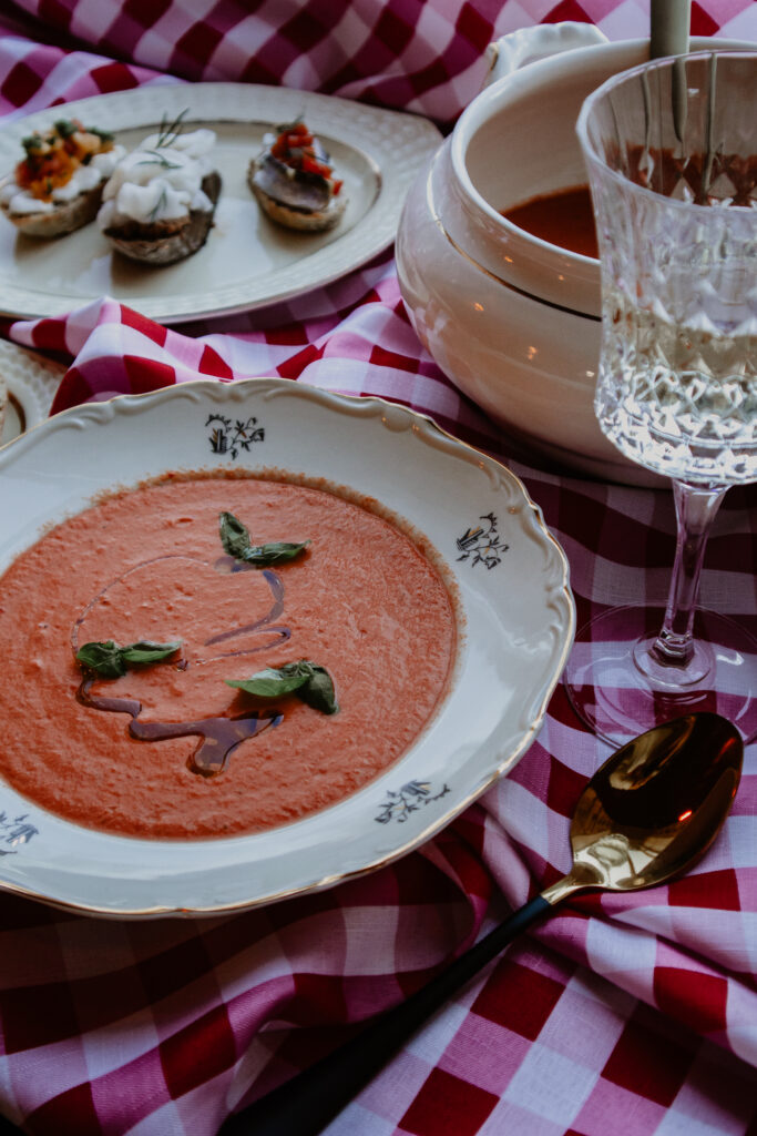 “Andalūzijas vilnis” – Gaspačo ar garšaugos ceptu ciabatu – sarkana kā vakara debesis virs ūdens, dzestra kā upes malks tveicē