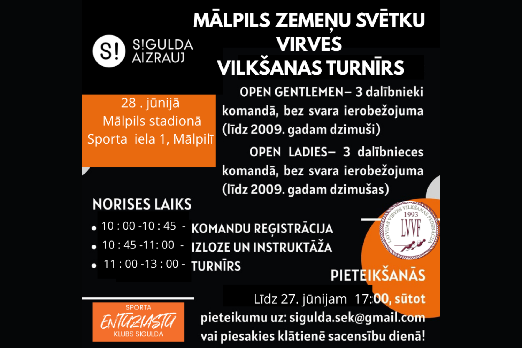 Mālpils Zemeņu svētkos aicina piedalīties Mālpils Zemeņu svētku virves vilkšanas turnīrā!