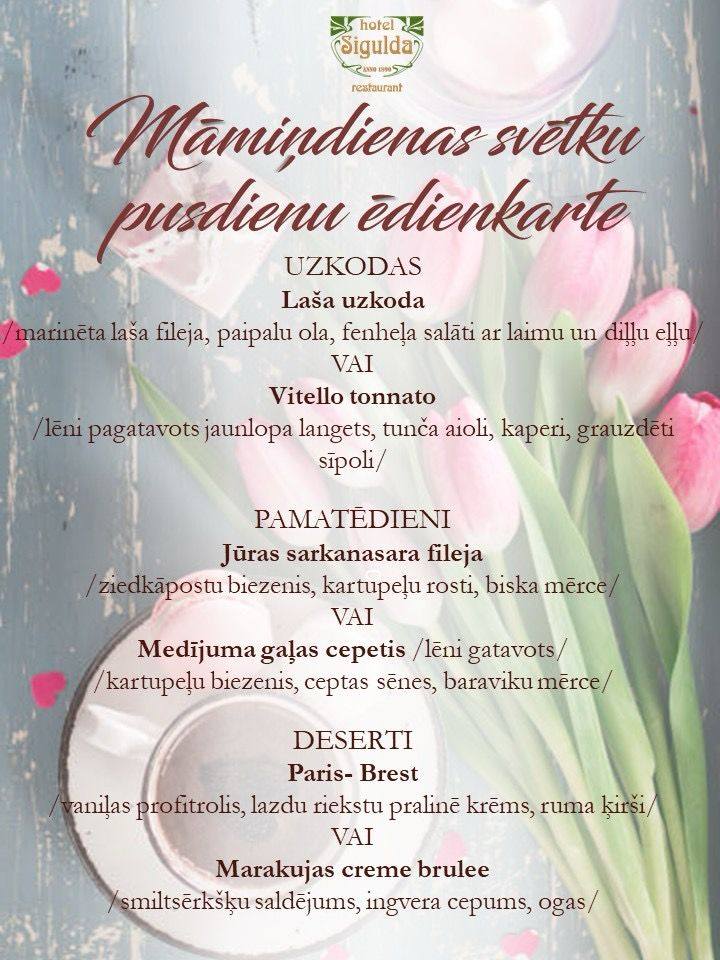 Viesnīca “Sigulda” aicina uz Māmiņdienas pusdienām – gardi un sirsnīgi!
