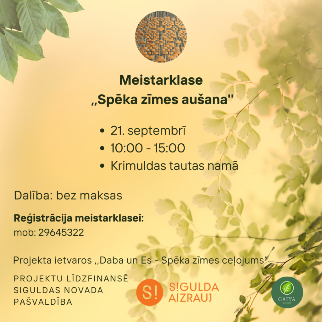 Krimuldas Tautas nams projekta “Daba un Es – Spēka zīmes ceļojums” ietvaros Siguldas novada iedzīvotājus aicina piedalīties spēka zīmes aušanas meistarklasēs.