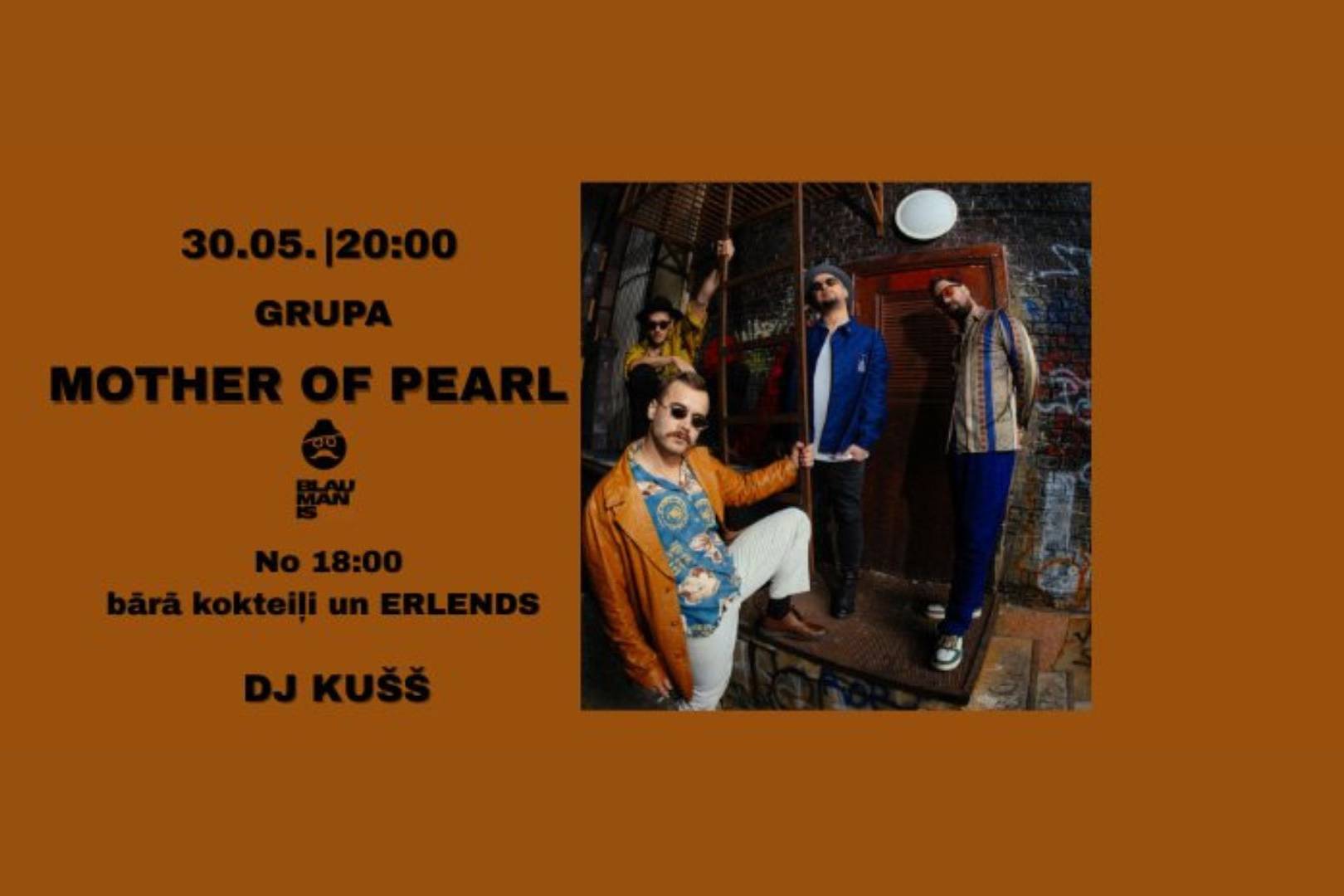 Kultūrvietā BLAUMANIS Siguldā ar enerģisku un emocionālu koncertu uzstāsies pašmāju alternatīvās mūzikas grupa Mother of Pearl. Grupa piedāvās klausītājiem neaizmirstamu vakaru ar jaudīgām dziesmām, atmosfērisku skanējumu un spilgtu klātbūtni uz skatuves.