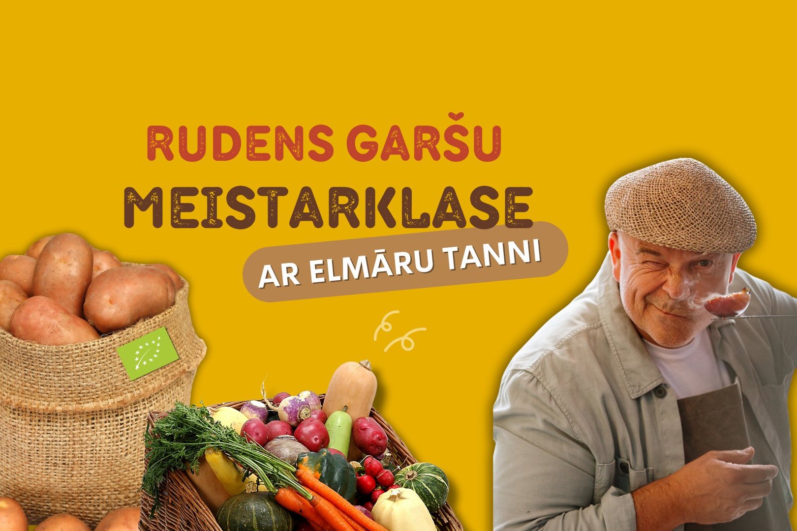 Plkst. 11.00 īpašā meistarklasē pie tirgus pavarda viesosies šefpavārs Elmārs Tannis, kurš dalīsies ar savu kulināro pieredzi un gatavos no tirdziņa bio produktiem, kā arī Agroresursu un ekonomikas institūta selekcionētajām kultūrām. Elmāra radošais skats uz ēdienu un dzīvespriecīgā pieeja virtuvei sola gardu un iedvesmojošu piedzīvojumu tirgus placī!