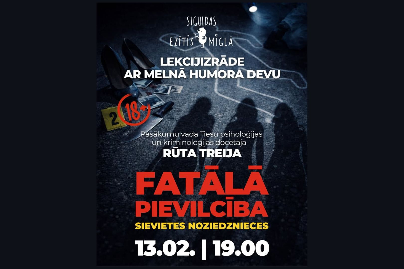 Satura brīdinājums: pasākumā tiek apspriestas slepkavības, vardarbība un sekss, kā arī izmantots melnais humors.