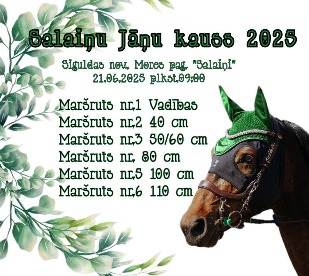 Siguldas novada, Mores pagasta “Salaiņos” notiks jātnieku sporta sacensības šķēršļu pārvarēšanā “Salaiņu Jāņu kauss 2025”.