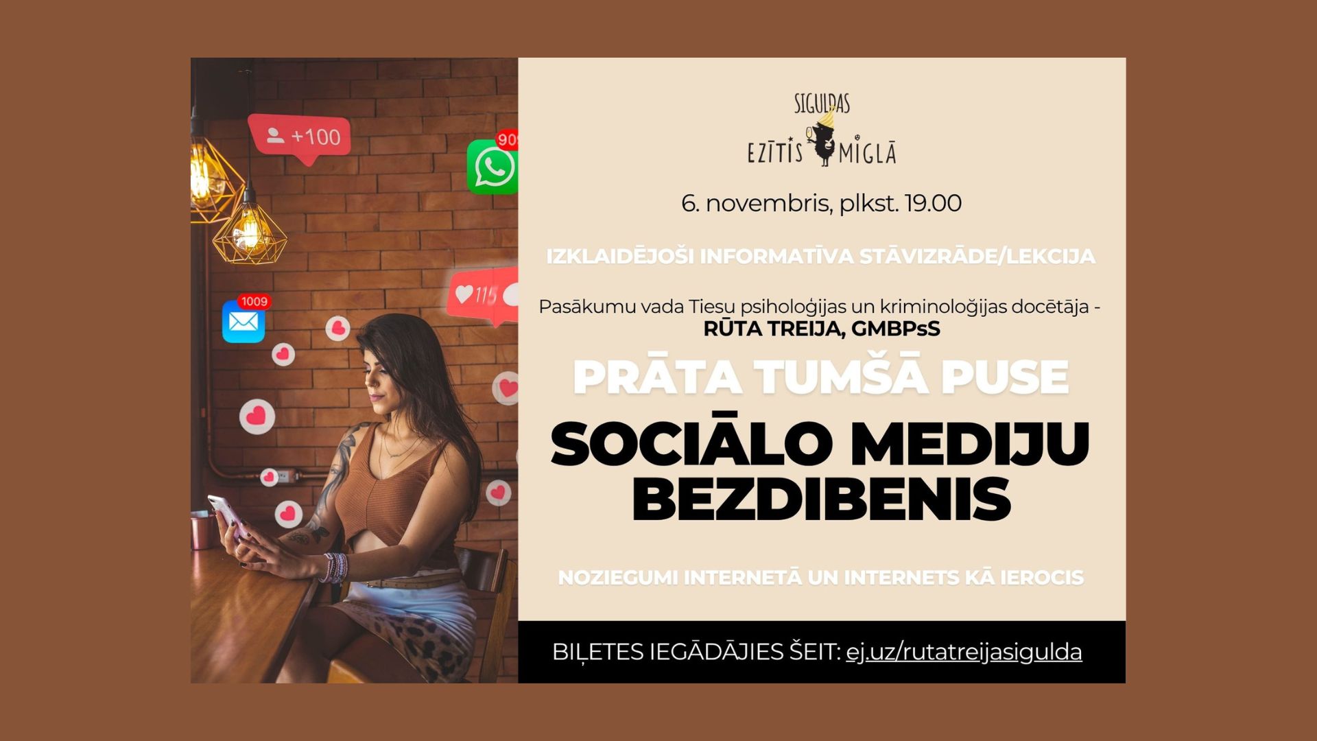 Rūta Treija atgriežas Siguldas Ezītī ar savu nākamo lekcijizrādi “SOCIĀLO MEDIJU BEZDIBENIS – noziegumi internetā un internets, kā ierocis”.