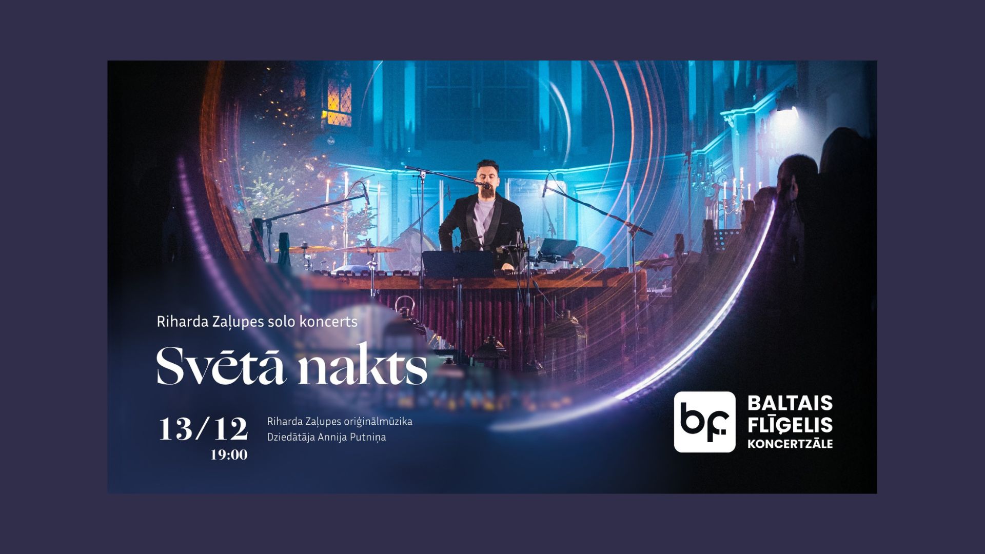 Aicinām piedzīvot Riharda Zaļupes īpaši svētkiem veidotu koncertprogrammu, kurā skanēs Zaļupes “Svētā nakts mesa” – kompozīcija balsīm, sitaminstrumentiem un elektronikai. Tajā galvenā uzmanība pievērsta mieram, apcerei un lēnai, meditatīvai mūzikai ar spēcīgu liturģisku tekstu.