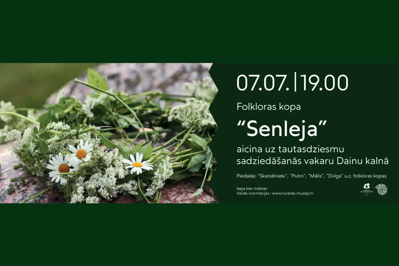 7. jūlijā vakarā plkst. 19.00 Siguldas folkloras kopa “Senleja” aicina uz tautasdziesmu sadziedāšanās vakaru Dainu kalnā.
