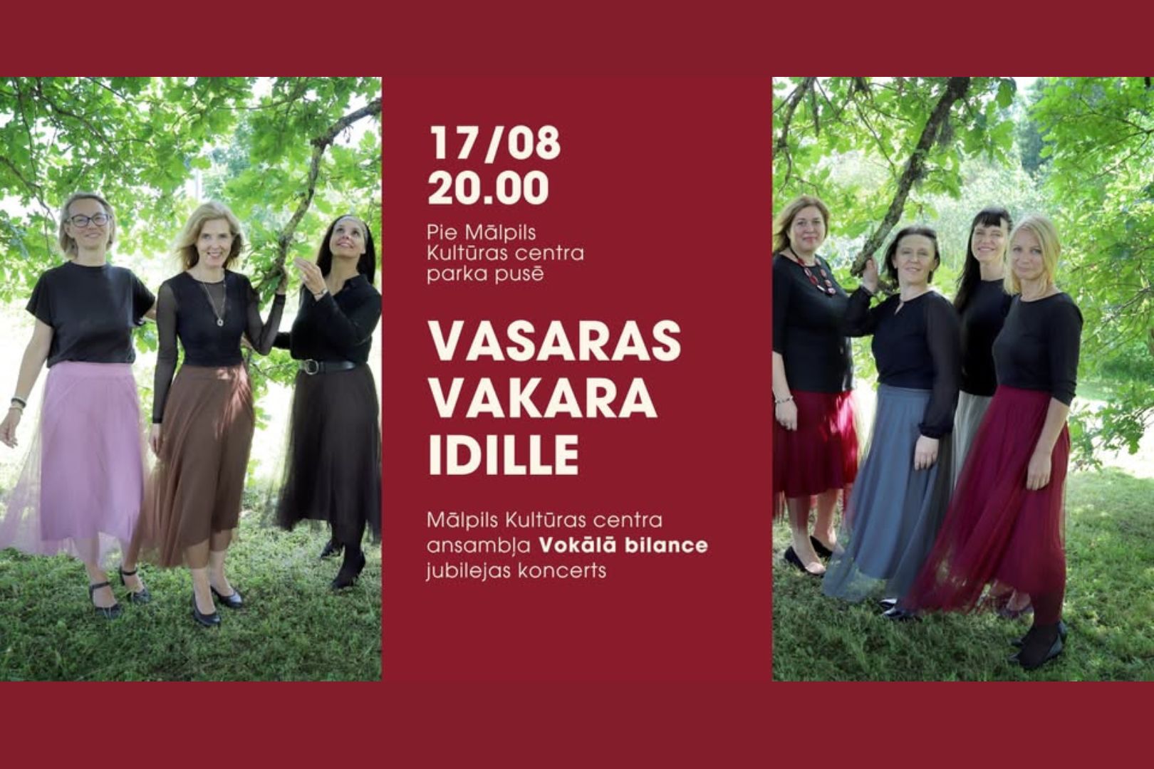 Pie Mālpils Kultūras centra, parka pusē, norisināsies īpašs notikums – “Vasaras vakara idille”, vokālā ansambļa “Vokālā bilance” jubilejas koncerts.
