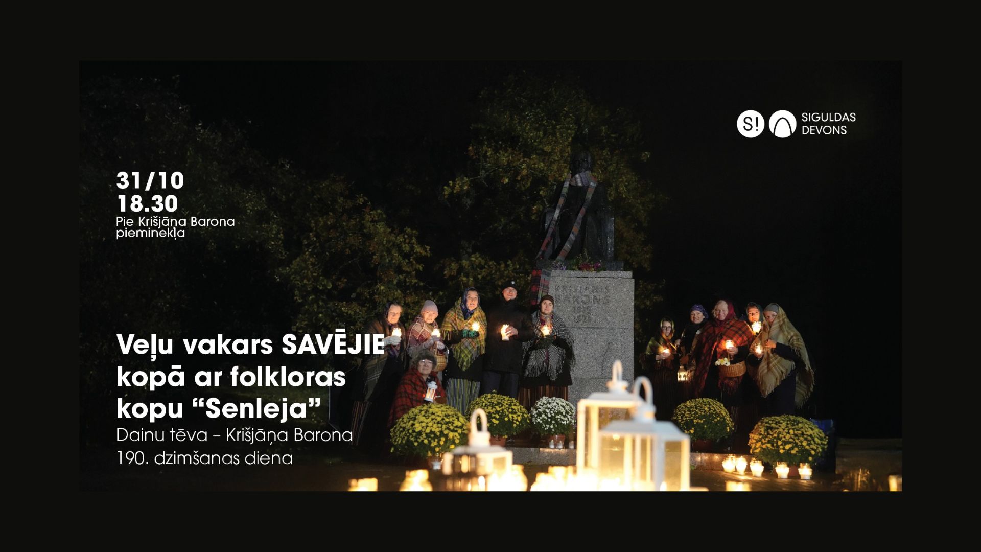 Laikā, ko izsenis sauc par veļu laiku, Siguldas folkloras kopa “Senleja” kā katru gadu aicina tumsiņā satikties 31. oktobra vakarā plkst. 18.30 Siguldā, laukumā pie Krišjāņa Barona pieminekļa, lai dziesmās pieminētu savējos, kas mīt viņsaulē, un godinātu Dainu tēvu 190. dzimšanas dienā.