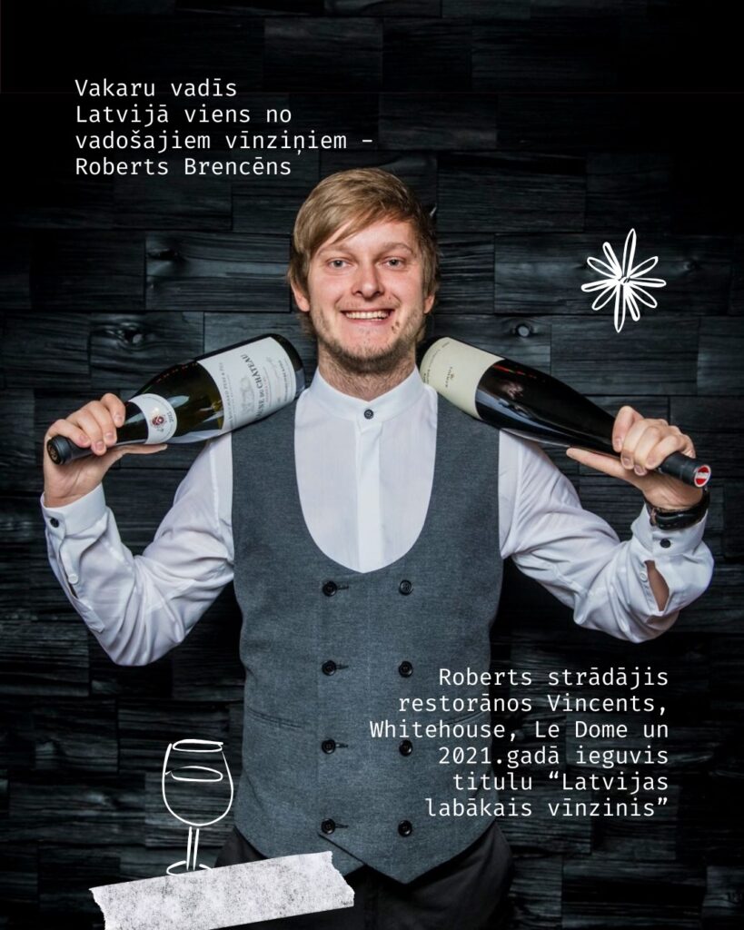 Viena no labākajiem Latvijas vīnziņiem, Roberts Brencēns, iepazīstinās dalībniekus ar sešiem dažādiem vīniem, kurus būs iespēja kombinēt ar pieciem sieriem un trim piedevām.