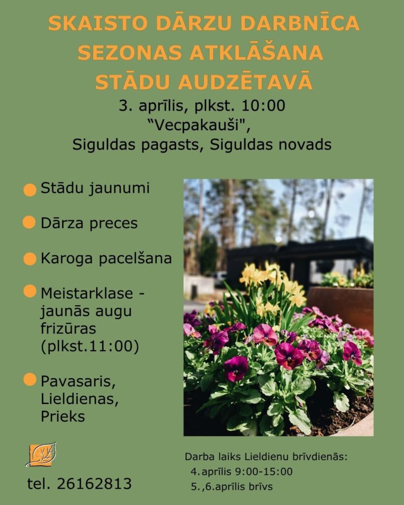3. aprīlī no plkst. 10:00 visi gaidīti stādu audzētavā “Skaisto stādu darbnīca”