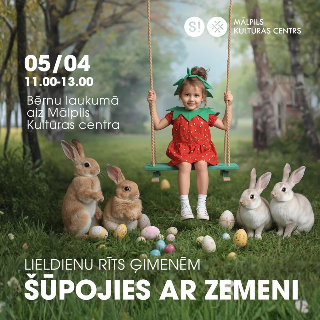 Kopā ar Lieldienu zaķi plānots izgatavot putnu būrīšus, vizināties ar zemeņu vagoniņu, ripināt olas un radoši darboties, satikt un apmīļot zaķus, kā arī atklāt šūpoles “Zemenes pasaulē”.